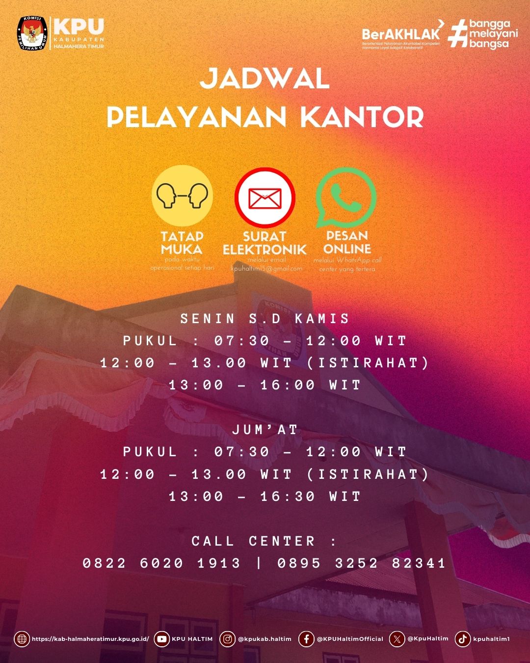 JADWAL LAYANAN KEPEMILUAN DILUAR JAM KERJA SEBAGAI BERIKUT :